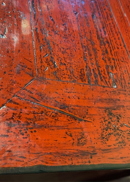 Finition laque rouge.