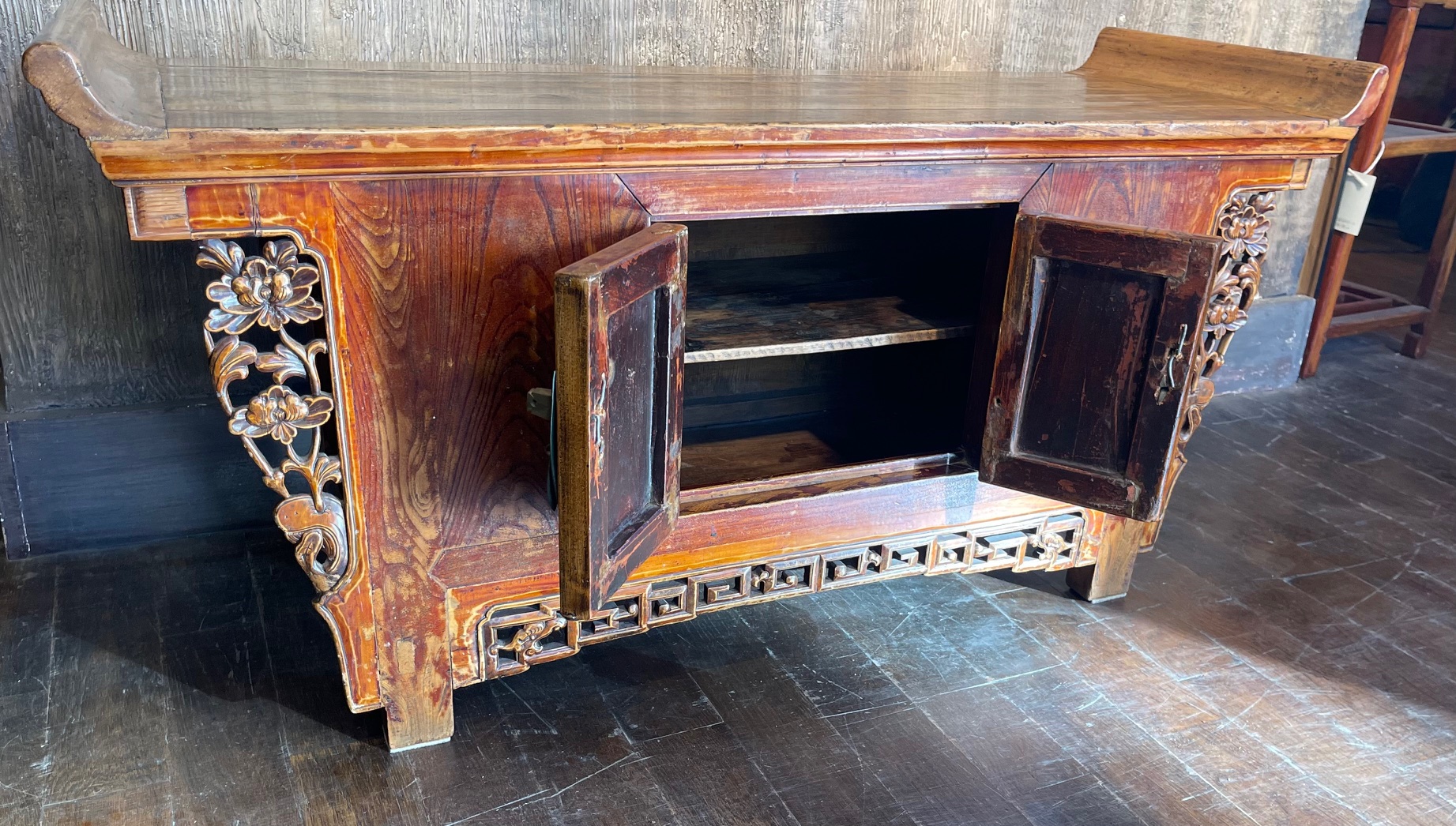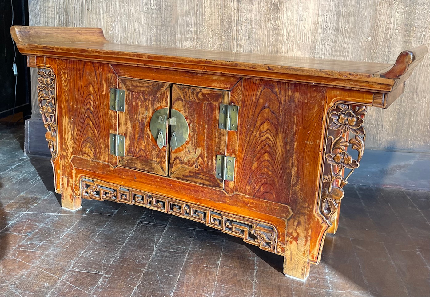 Meuble bas ancien chinois ouvrant par 2 portes.